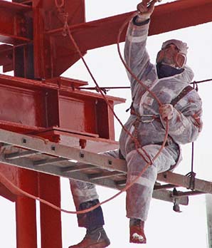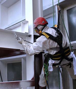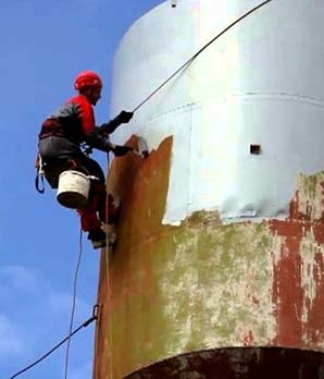 Существует промышленная прокраска кранов, которая применяется с альпинистским снаряжением. Помимо кранов, они окрашивают и другие высотные сооружения, например, высокие дымовые газоходы. Специалисты компаний, занимающихся экстремально опасной обработкой, такого характера работают качественно и действуют с соблюдением следующих процедур: